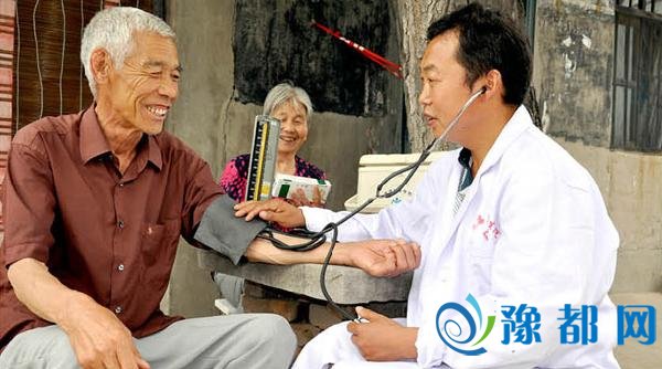 “七一”前夕,高庙乡乡村医生郭改新上门为羊虎山村70岁老党员郭清娃测量血压、血糖,并进行合理膳食、正确用药、自我保健等健康指导。为庆祝中国共产党建党95周年,区卫计委统一组织辖区医疗机构开展“庆‘七一’,关爱基层老党员”健康体检活动,上门为年龄偏大、行动不便老党员免费检查身体,让老党员们感受到党和政府的温暖。(侯青峡李亮 摄)