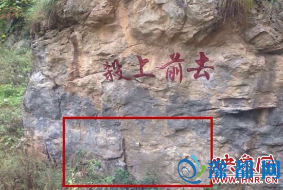 红军用白石灰书写的“杀上前去”在现在红字的下方