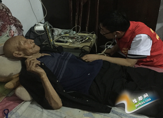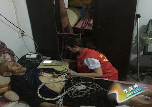 青年党员志愿者为老人做心电图检查
