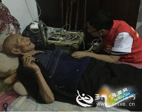 义马市医院志愿者为抗战老兵量血压